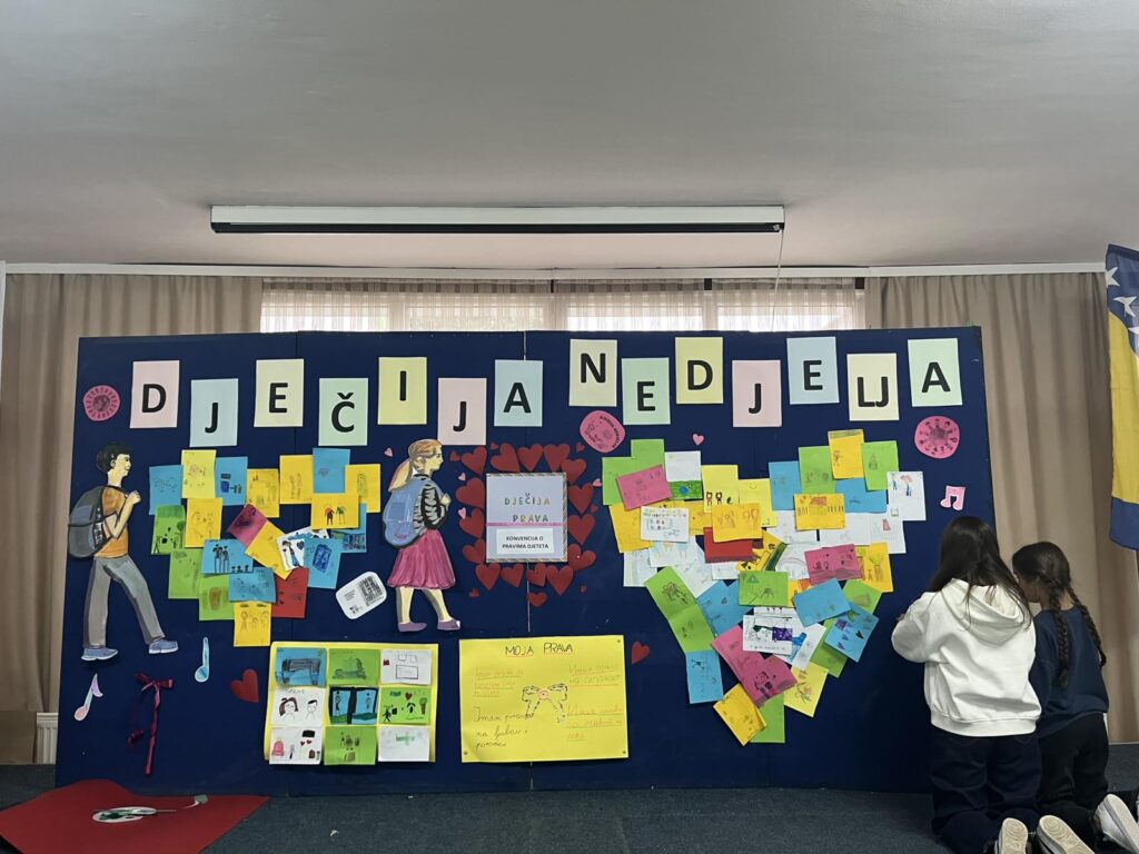 U okviru Dječije nedjelje, stručna služba škole i bibliotekarka, uspješno su realizirali niz aktivnosti za sve razrede. I i II razredi – u školskom holu pripremili su izložbu likovnih radova na temu: “ Moja sreća je…”. III, IV, V i VI razredi učestvovali su u natječaju za najbolji literarni rad na temu: “Sretno djetinjstvo – …