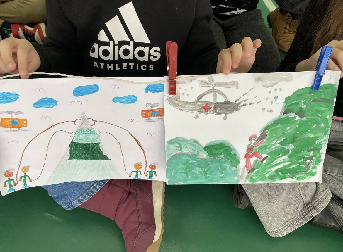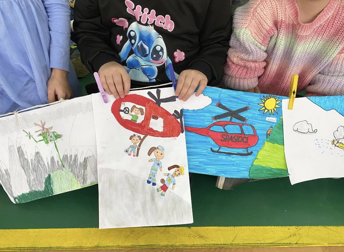 Druženje je proteklo u veselom i kreativnom okruženju. Naši učenici sa svojim učiteljicama su pripremili malu izložbu radova na temu spašavanja, humanosti i pružanja pomoći.